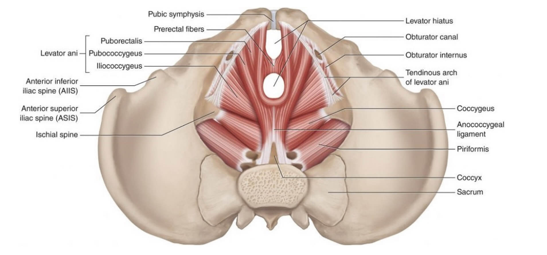 ACTION: Supports the pelvic viscera and elevates the pelvic floor. It also has a minor role in flexing the coccyx.